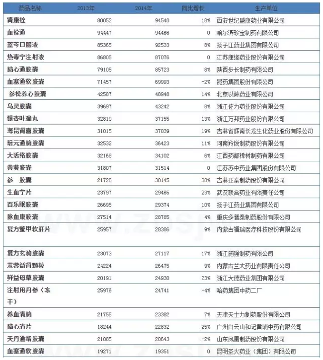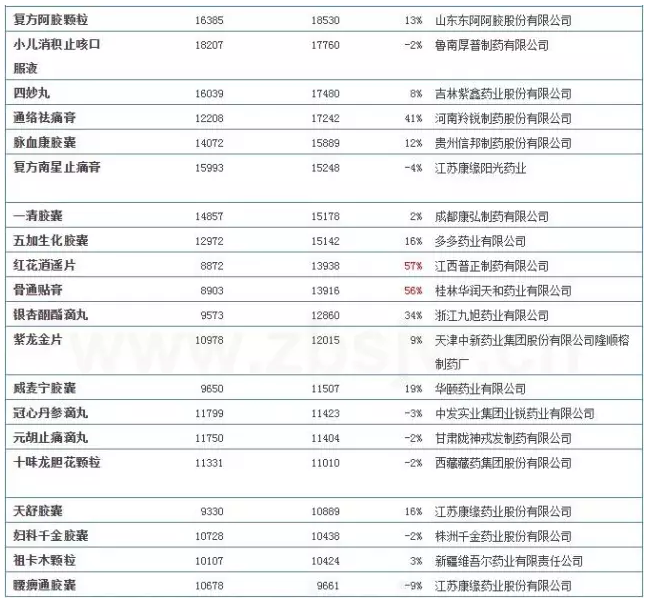 另外表2中的亮點(diǎn)在于,江西普正制藥的紅花逍遙片和桂林華潤(rùn)天和藥業(yè)的骨通貼膏2014年銷量增長(zhǎng)后勁十足,增長(zhǎng)率超過50%,紛紛跨入銷量?jī)|元級(jí)別品種梯隊(duì)。