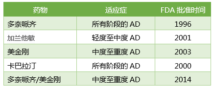 FDA批準(zhǔn)的阿爾茲海默病 (AD) 藥物