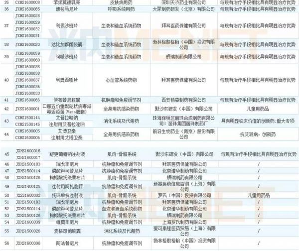 在361個已通過優(yōu)先審評的受理號中,有97個(涉及56個產(chǎn)品)以“新藥上市”為申請事項,恒瑞、諾華、拜耳、西安楊森、正大天晴等均在列。