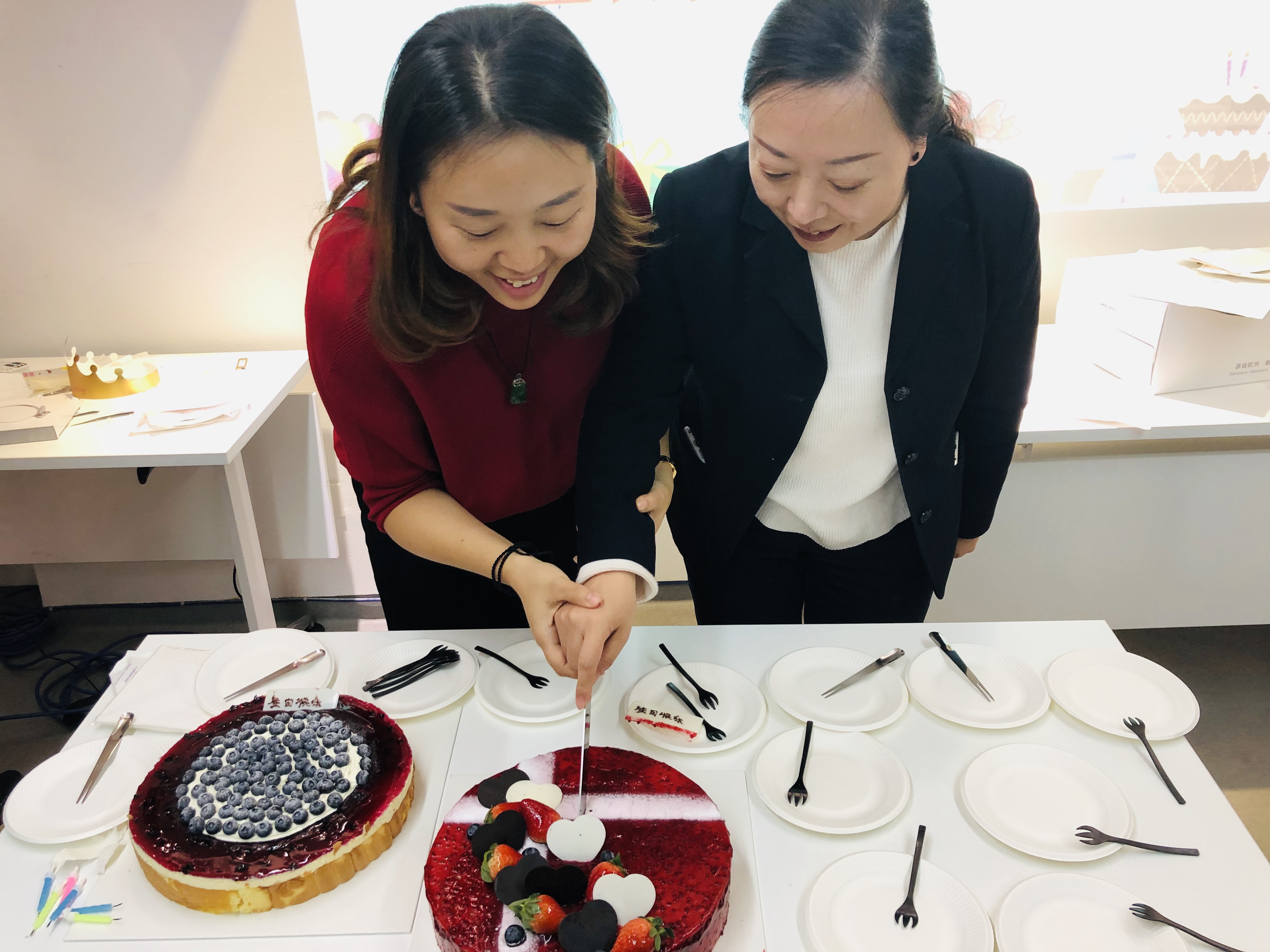 總經(jīng)理助理張宇、營銷總監(jiān)行琨為大家切分生日蛋糕。