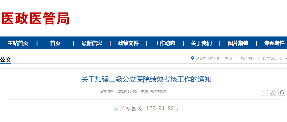 按照《通知》要求,到2022年,要建立較為完善的二級公立醫(yī)院績效考核體系,按照屬地化管理原則,二級公立醫(yī)院全部納入績效考核范圍。各省在2020年6月底前出臺具體實施方案,2020年12月底前完成第一次二級公立醫(yī)院績效考核,2021年起每年6月底前完成上述工作。