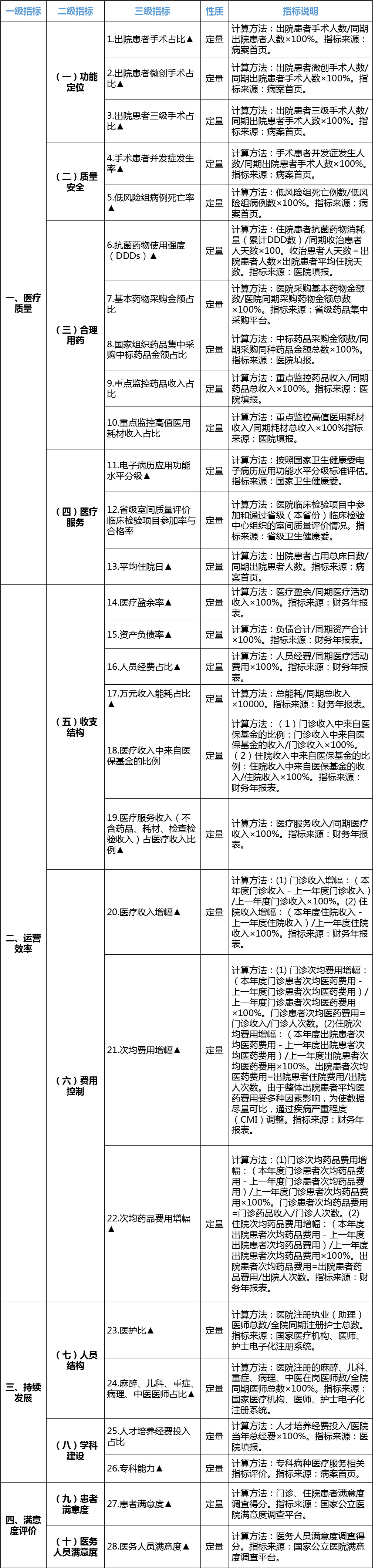 2.二級公立醫(yī)院績效考核指標體系共28個指標,其中國家監(jiān)測指標21個。