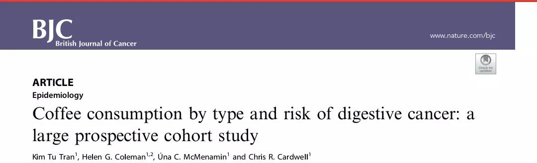 Kim Tu Tran, Helen G. Coleman, úna C. McMenamin Coffee consumption by type and risk of digestive cancer: a large prospective cohort study